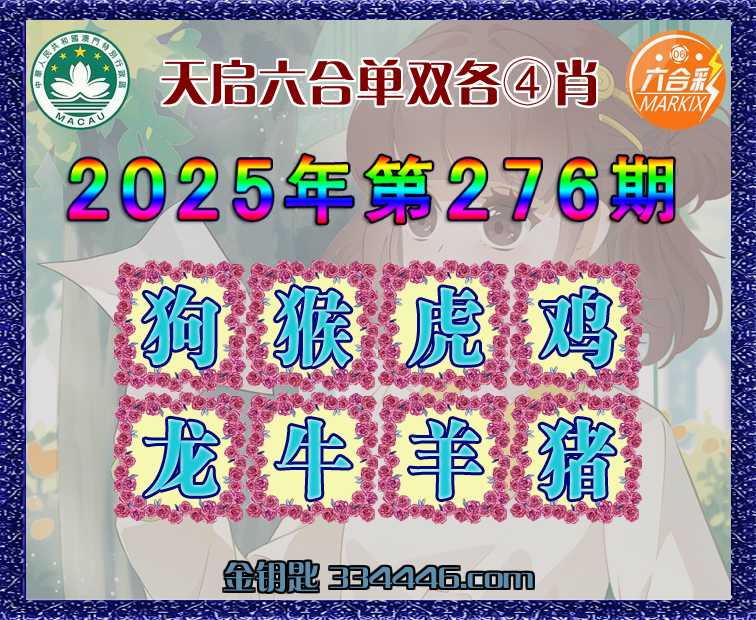 274期:《天启六合》 🧩单双各④肖🧩开:狗44准上榜高手